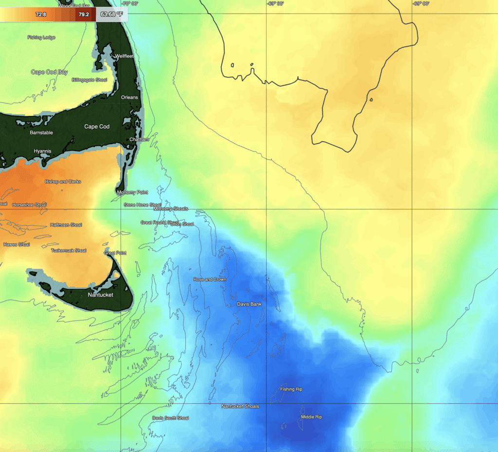 Atlantic bluefin tuna are powerful, highly migratory predators that travel thousands of miles across the Atlantic each year. In the Northeast—off Cape Cod, Long Island, and the surrounding offshore and nearshore waters—they typically arrive from late spring through early fall, favoring cooler waters between 60–68°F. While they’re often found offshore near canyons, shelf edges, and temperature breaks, bluefin also come incredibly close to shore. In recent years, schools of giants and schoolies have been caught just off the beach, around sandbars, and even while anchored — especially in areas like Cape Cod Bay, Stellwagen Bank, the backside of the Cape, and the waters off Montauk. Bluefin target dense schools of bait like sand eels, herring, mackerel, and squid, and often feed aggressively along current lines, drop-offs, and inshore shoals. Their presence depends less on distance from shore and more on bait concentration, water temperature, and current movement.