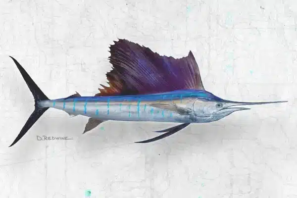 The Atlantic sailfish is a highly prized game fish known for its incredible speed, agility, and distinctive sail-like dorsal fin. Found in warm waters of the Atlantic Ocean, this species is characterized by a streamlined body and an elongated bill, which it uses to slash through schools of prey. Sailfish are among the fastest fish in the ocean, capable of reaching speeds up to 68 miles per hour. They are opportunistic predators, primarily feeding on small pelagic fish such as sardines, mackerel, and anchovies, as well as cephalopods like squid. Sailfish are known for their migratory behavior, often traveling long distances in search of food and favorable breeding conditions. Their remarkable speed, powerful jumps, and acrobatic displays make them a favorite among sport fishermen.