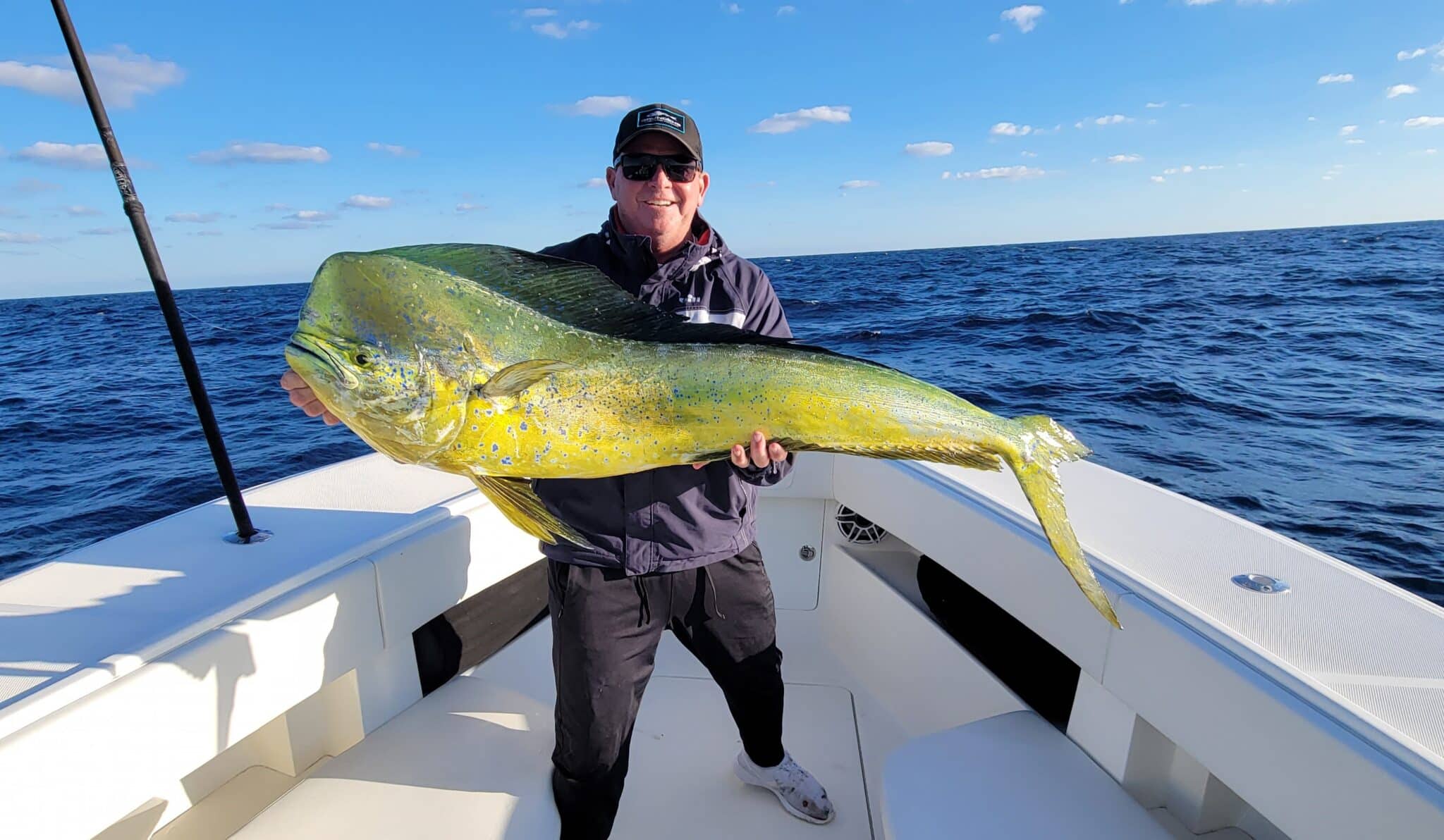 Plan A is the type of fishing you’ve heard is happening or something you’ve been wanting to do. For example, Pete Black, owner of the Lola and I were dying to get back offshore on the next weather window. After an extremely long fetch of hard east wind, we’ve had Pete’s 39 Seavee sitting in the lift too long. Before the start of the blow, the fleet of charter boats in Port Canaveral and some buddies had a few great days catching dolphin. We often experience a “Fall” run of dolphin. Usually encountered when starting to look for sailfish as the water cools and the first few cold fronts start to push fish southward from higher latitudes.
