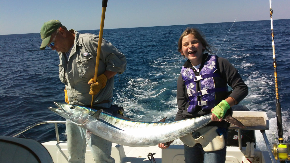 While temp breaks are a major wahoo-attractor, don’t sell structure short. Shelves and ledges, aggregated weeds, and flotsam can all attract these fish. Another way you can sometimes make a bonus wahoo catch is by keeping a bailing rig tipped with wire leader handy when you’re targeting mahi-mahi. Try bailing long enough and sooner or later you’ll look over the side and see a wahoo go darting past—get the other lines out of the water and bait up the wire rig asap.